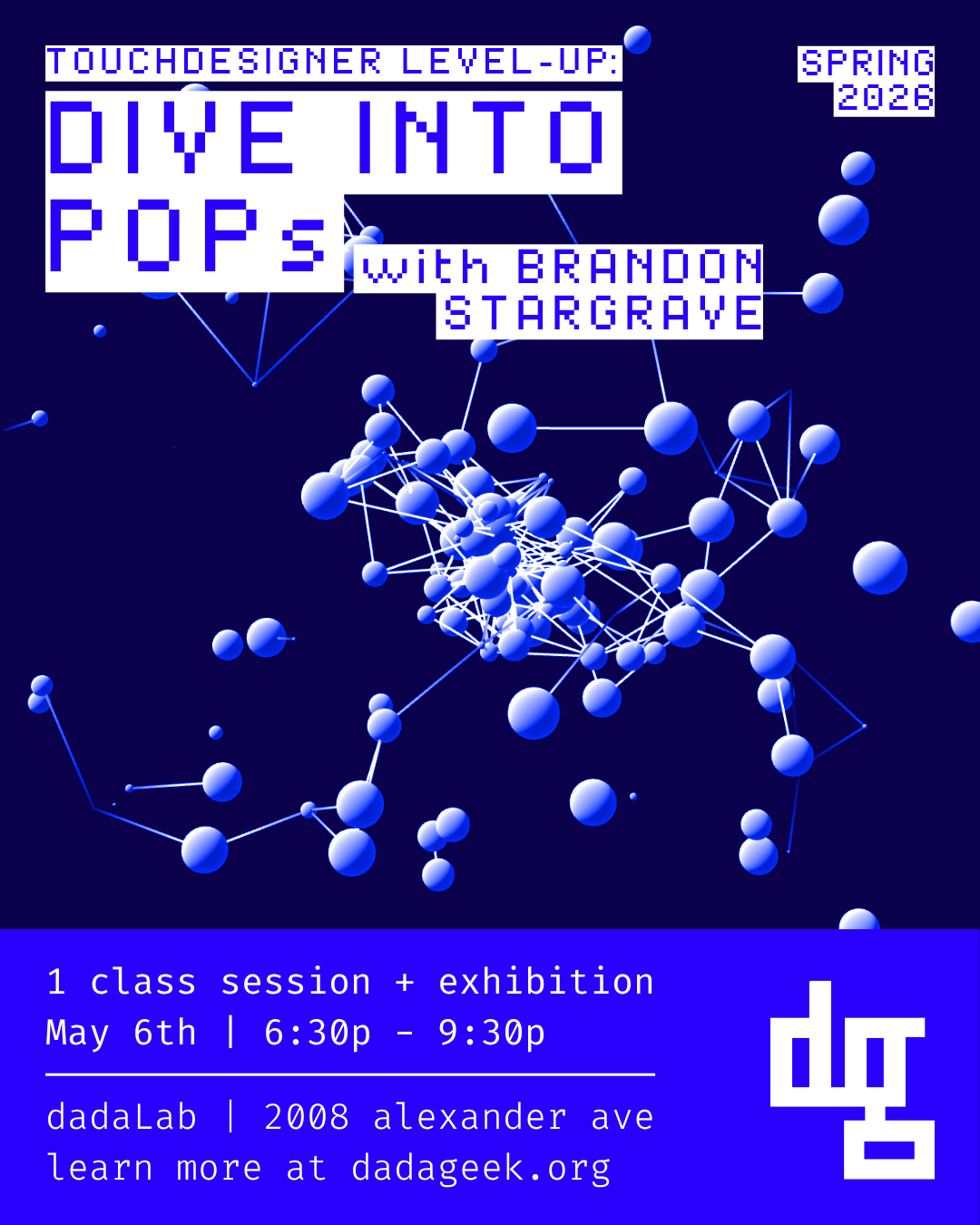 dadageek courses and workshops are a deep-dive into a tech-art subject.